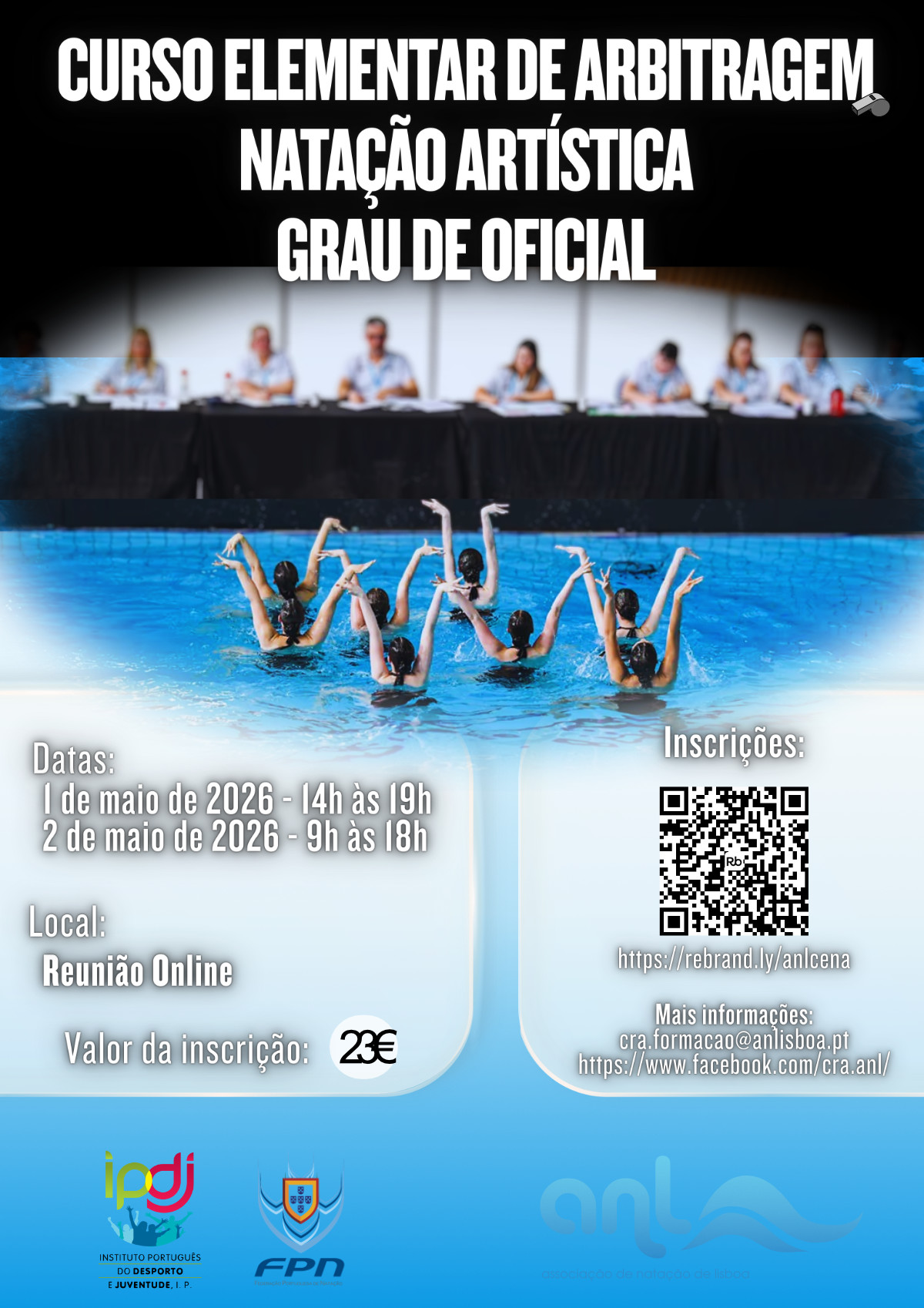 A ação de formação decorrerá nos próximos dias 1 e 2 de maio, em formato online, habilitando os formandos ao conhecimento dos regulamentos e das regras que regem a natação no seu geral, mas em particular desta modalidade, e por sua vez integrarão o quadro regional de arbitragem, permitindo aos interessados e amantes da modalidade contribuírem para o seu desenvolvimento.