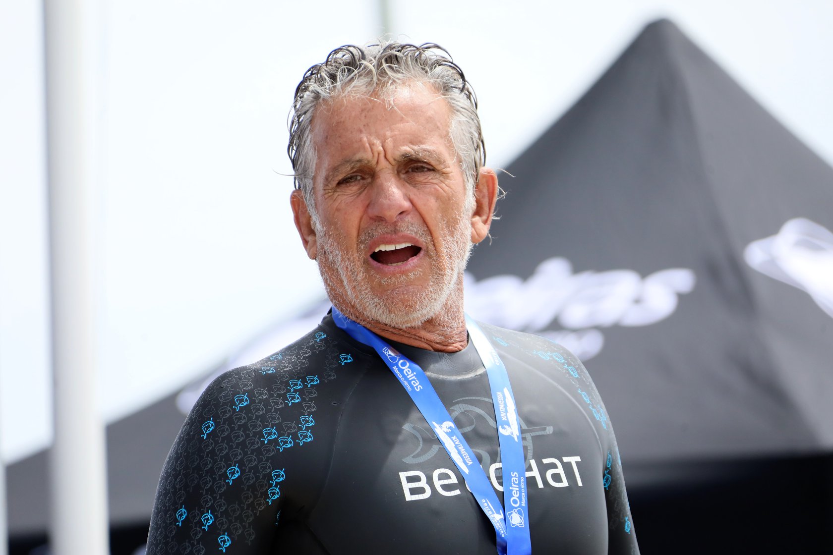 O homenageado António Bessone Basto e o Vereador do Desporto da CMO Pedro Patacho deram a partida oficial na prova reservada a federados e convidados, na distância de 2.500m, que registou à partida 167 nadadores.